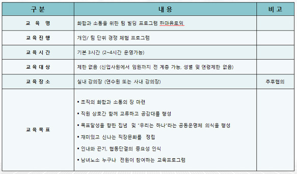 실내조정 - 한마음교육 - 조직활성화 - 화합과 소통 - 팀빌딩 프로그램 - 기업교육